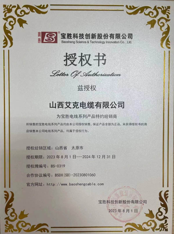 寶勝電纜山西銷(xiāo)售中心山西艾克電纜有限公司是寶勝電線電纜的官方授權(quán)經(jīng)銷(xiāo)商,授權(quán)編號(hào)BS-0319。專(zhuān)業(yè)經(jīng)營(yíng)寶勝牌電線電纜,包括電力電纜,控制電纜,橡套電纜;硅橡膠電纜,氟塑料電纜,補(bǔ)償電纜,各種阻燃,低煙無(wú)鹵,耐火,及高溫電線電纜;架空絕緣電纜,船用電纜,礦用電纜,機(jī)車(chē)車(chē)輛電纜,計(jì)算機(jī)電纜,儀表信號(hào)電纜,高壓交聯(lián)電力電纜,低壓輻照交聯(lián)電力電纜,低壓輻射交聯(lián)控制電纜,低壓輻照交聯(lián)電纜,預(yù)分支電纜,1E級(jí)K3類(lèi)核電站電纜,承荷電纜,自控溫電纜,布電纜,鋁絞線,和鋼芯鋁絞線等電線電纜產(chǎn)品。產(chǎn)品備有大量現(xiàn)貨、各種型號(hào)顏色齊全、支持配送。